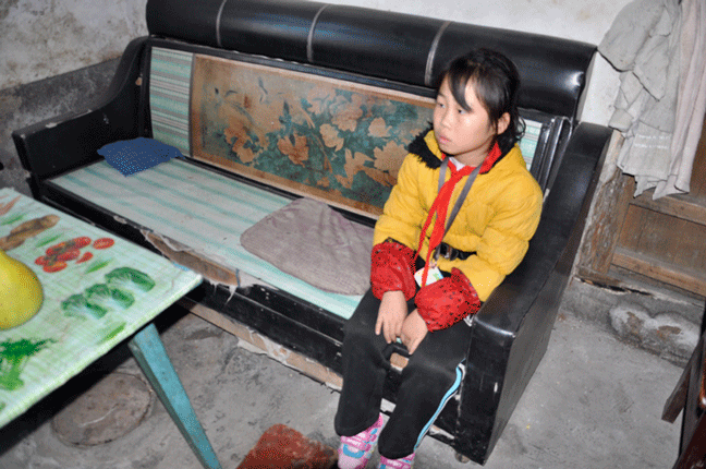 这位娇小的女孩叫龙纶艺,母亲身患顽疾,不能劳动,长期的寻方问药致使家中债台高筑。父亲因需照顾生病的母亲和年幼的弟弟,不能外出打工,只能以种田和打零工挣钱度日,目前一家人仍借住在一位老爷爷家的旧房子里。